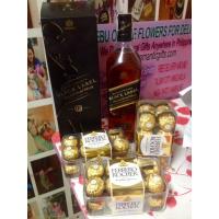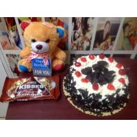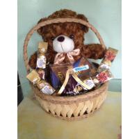 In Basket: Medium brown bear, 20 Ferrero chocolates, Maxcrunch chocolate 2 bars big size,Hershey's Kisses 2pack