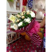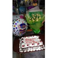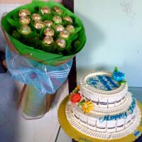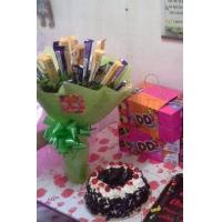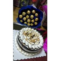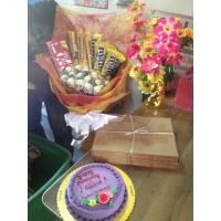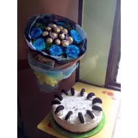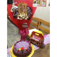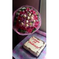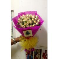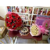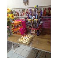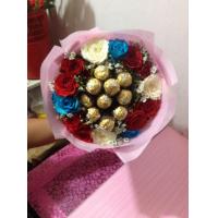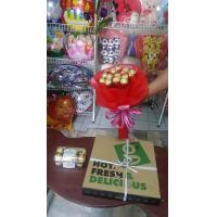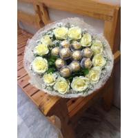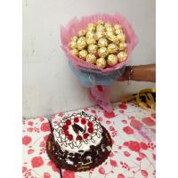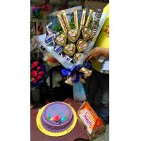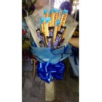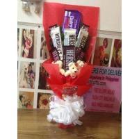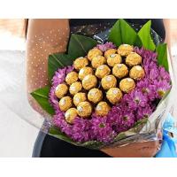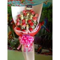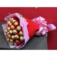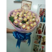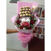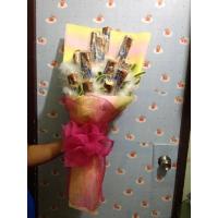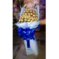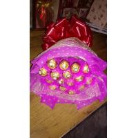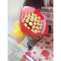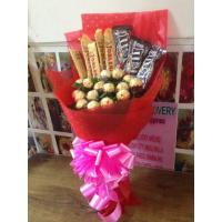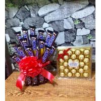 a bouquet of 5pcs toblerone 50g each,M&M's 5pcs, 1pack kitkat and 16 ferrero chocolates..