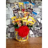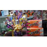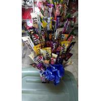 A bouquet of 13's snickers chocolates, 2x100g toblerone, 4 M&M's, 3 hersheys kisses..