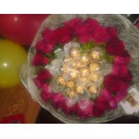 A bouquet of 16 Ferrero rocher rounded with 24 red roses