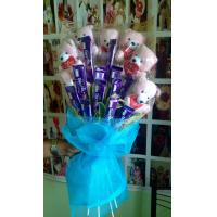 A bouquet of 12 Cadburry Chocolates and 7 teddies