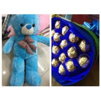 12 ferrero rocher chocolate rounded by 6 blue roses bouquet