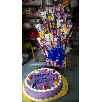 a bouquet of 6' hersheys kisses, 2 snickers and 1 cadburry chocolates.