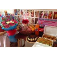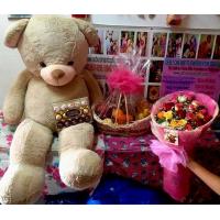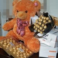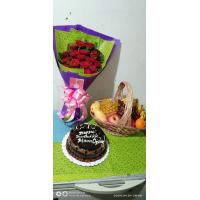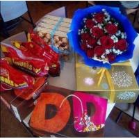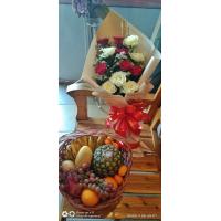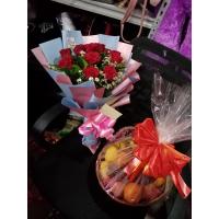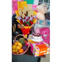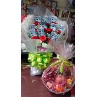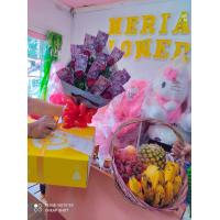 1/2kl grapes, 3pcs apple ,2pcs mango, 3pcs orange, dairymilk cadburry 150g big bar, valor chocolate 100g , peanut 1 pck,