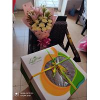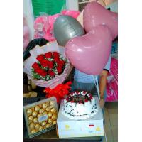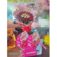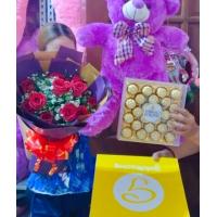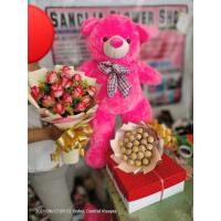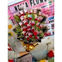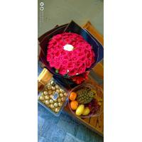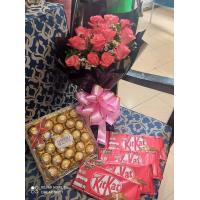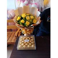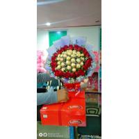 a bouquet of 30 ferrero chocolate rounded by 24 red roses.