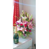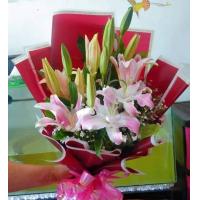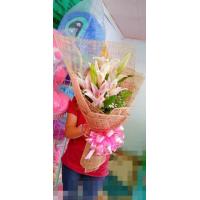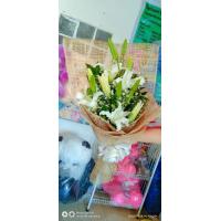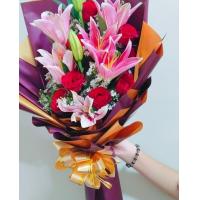 10 purple carnations with 3 lilium flowers.