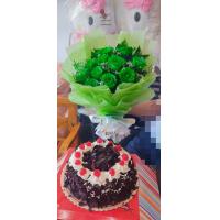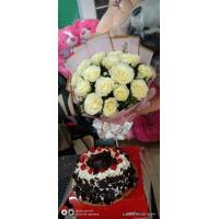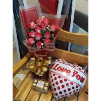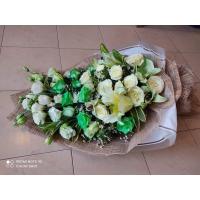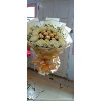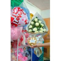 12 white roses with 10 ferrero chocolates bouquet