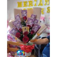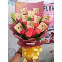12 red roses bouquet with real cash 5,500php
