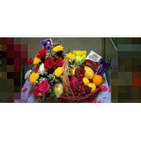 inside basket: mix flowers and