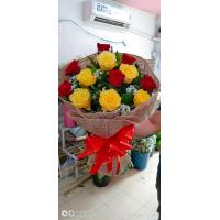 A bouquet of 12 red and YELLOW roses,