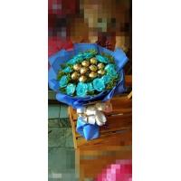 A bouquet of 12 blue roses with 10 ferrero chocolate ,