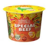 Restaurant style beef noodle soup at its finest is made possible anytime, anywhere, with Lucky Me! Supreme Special Beef.